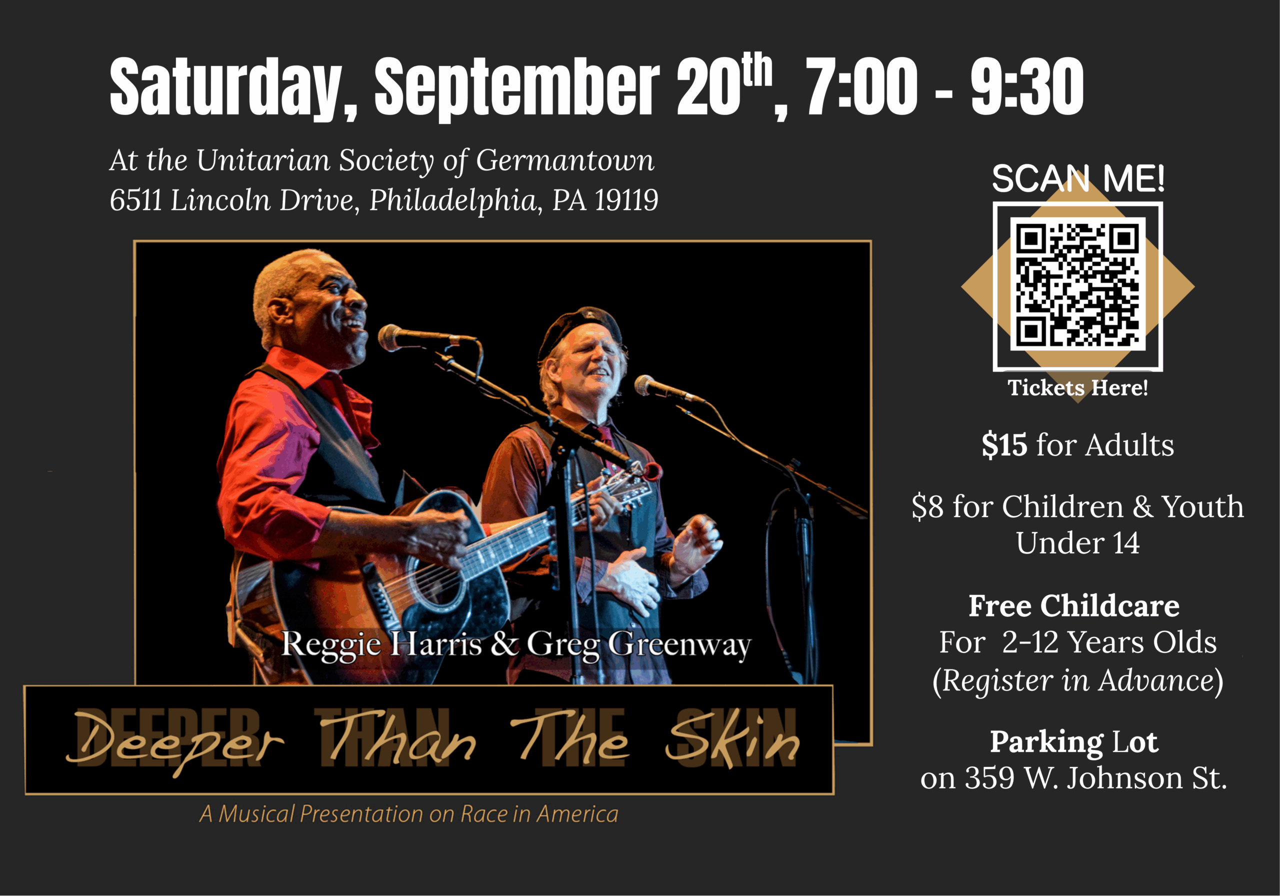We are thrilled to host Reggie Harris and Greg Greenway for Deeper Than The Skina musical presentation on race in America.